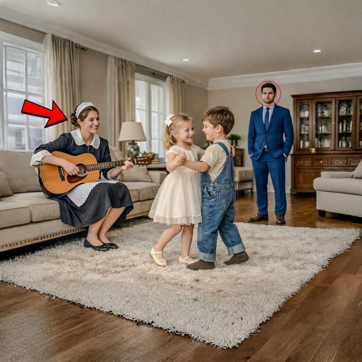 En el sillón, todavía con el uniforme blanco y negro de servicio, Mariana, la muchacha que limpiaba la casa seis días a la semana, tocaba una guitarra. No lo hacía como quien rasca por matar el tiempo; lo hacía con una delicadeza que parecía nacida de otra vida. Y al fondo, casi oculto junto a una librera de madera oscura, estaba Víctor, su chofer y hombre de confianza, mirando la escena con calma, como si eso hubiera sido parte del plan desde siempre.