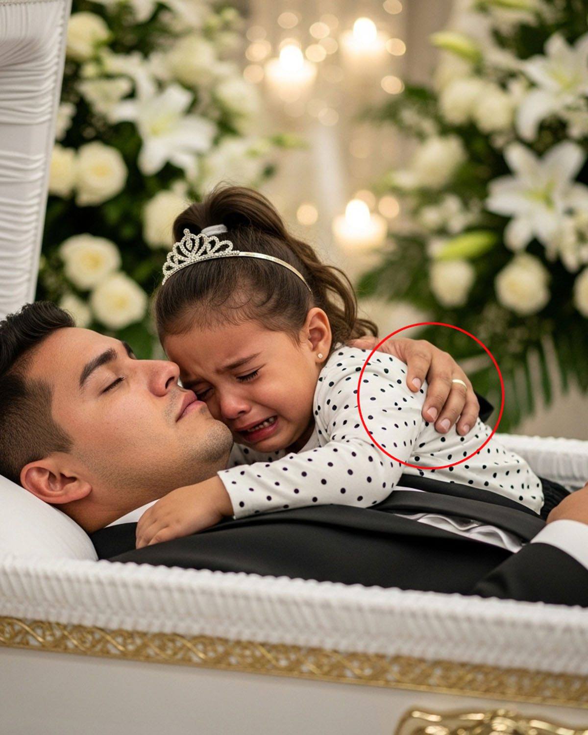 Una niña abrazó a su padre en el ataúd espeluznante.